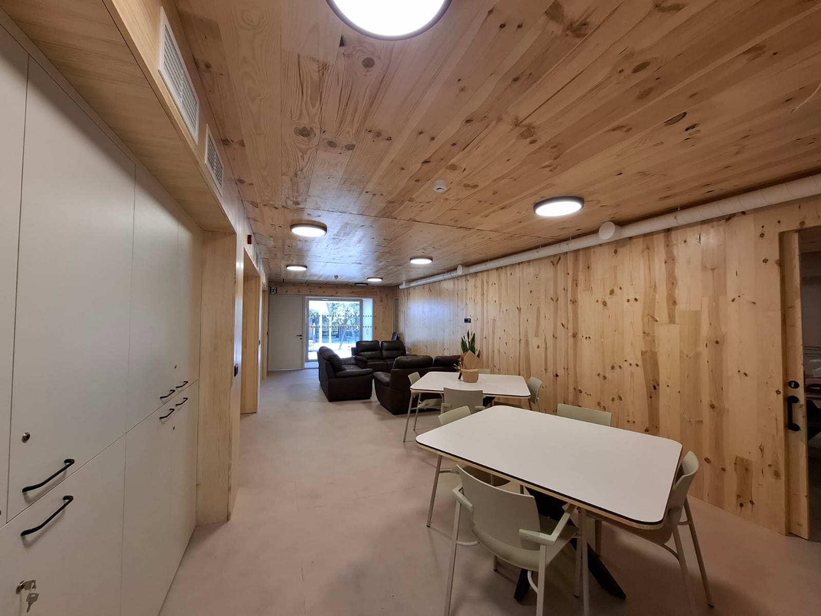 La residencia está formada por viviendas independientes donde conviven en grupos de 6 a 7-8 alumnos/as, bajo la responsabilidad de educadoras.